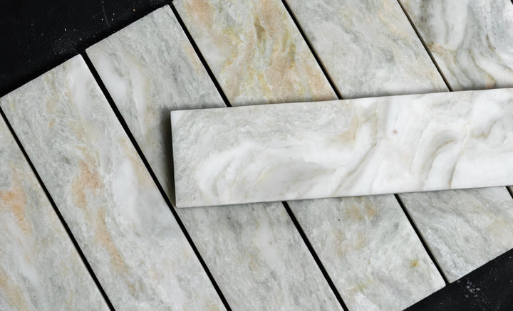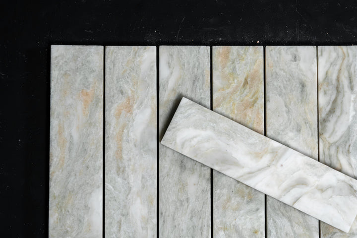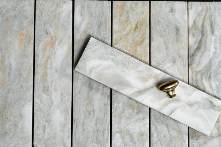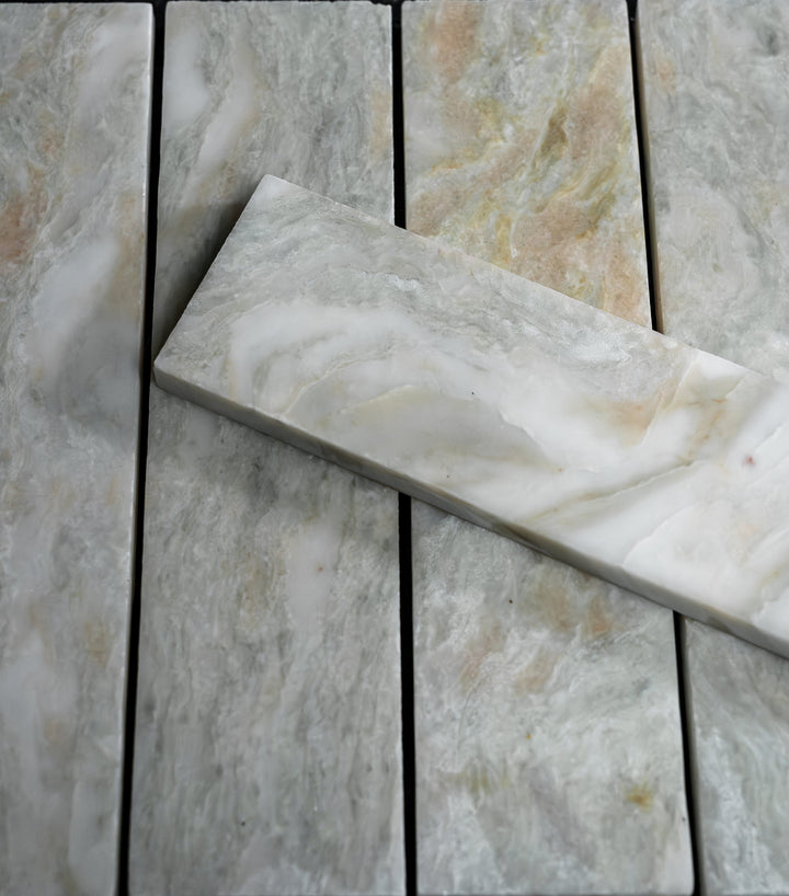 Where mountain-born stone meets minimalist design. Altara Align captures the serene purity of Himalayan alabaster and elevates it through the clean geometry of the stack bond pattern. Each piece is softly honed to reveal the alabaster’s subtle luminosity — a quiet glow that shifts with the light.