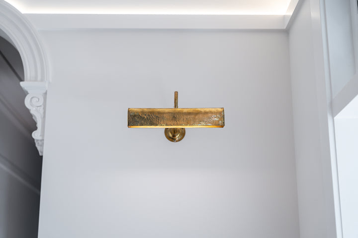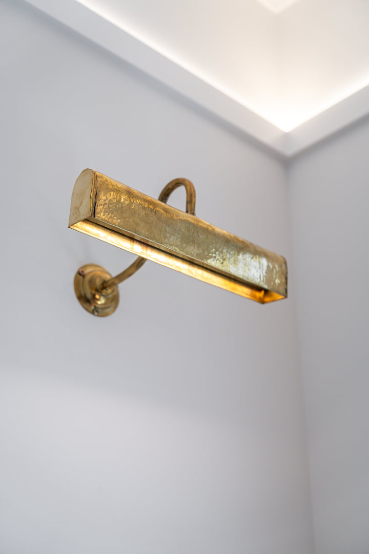 The Linea Picture Light is a refined lighting piece designed to complement without overpowering—its slender brass form extending gracefully across artworks, niches, and curated walls. Crafted in the Himalayan highlands, each light is hand-forged from solid brass, revealing subtle textures and natural patina that speak to its artisanal origin.