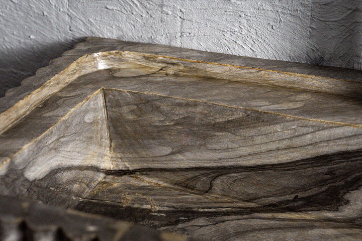Each piece is shaped from reclaimed Himalayan quartzite — sourced from ancient mountain quarries and river-worn landscapes — revealing natural veining and tonal depth forged over centuries. The fluting adds a tactile rhythm, catching light and shadow in a dance that elevates both minimalist and maximalist spaces.