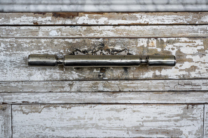 The Shyama Twist Handle is a refined study in rhythm and restraint—its sinuous form hand-twisted from a luminous blend of silver and white Himalayan metal. The name Shyama, rooted in Sanskrit and meaning “dark beauty” or “sacred calm,” contrasts poetically with the cool, pale sheen of its surface—a harmony of strength and stillness.