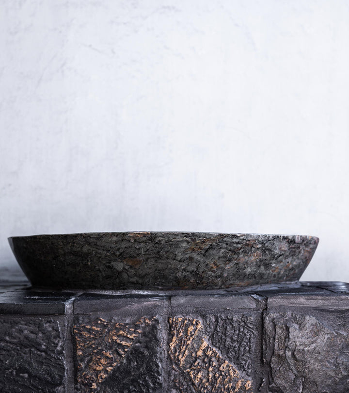 Born from the heart of the Himalayas, the Verdure Basin is sculpted from granite unearthed through river diversions and highland road construction across Nepal — each piece a quiet remnant of the region’s evolving terrain. With soft green tonalities laced with mineral veining, this basin tells a story of nature's raw resilience refined by the hands of Himalayan artisans.