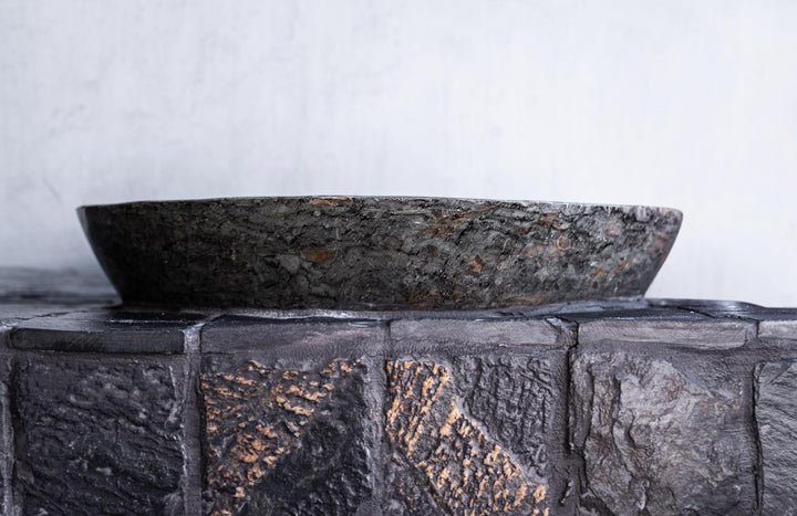 No two basins are alike. The surface bears the natural texture of stone shaped over millennia, now reimagined into a refined vessel for contemporary sanctuaries. Rugged yet elegant, grounded yet sculptural — the Verdure Basin is a statement of origin, sustainability, and timeless design.